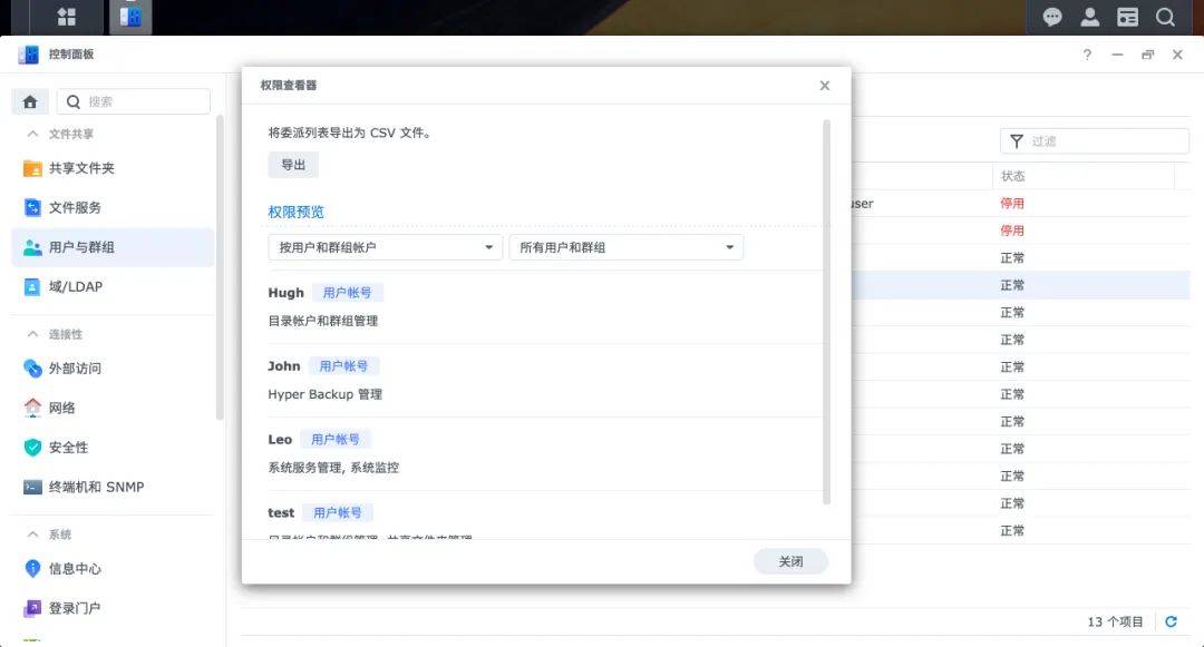 为此,群晖在DSM 7.0中增加了二级权限功能,系统管理员可以将部分权限下放给指定人员,包括用户和群组管理、域帐户和群组管理、共享文件夹、系统监控等。