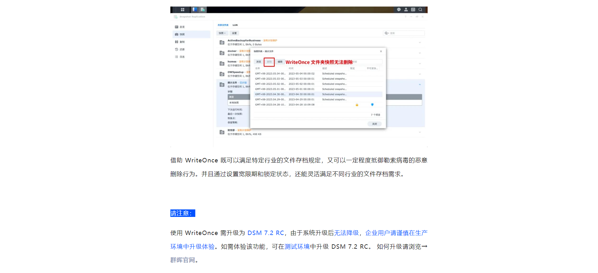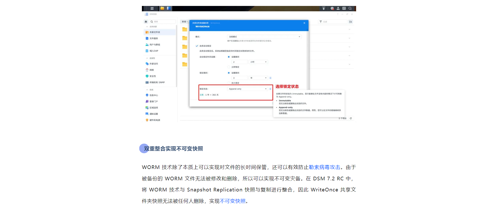 DSM 7.2推出一次写入,长久存储,文件防篡改,支持不可变快照